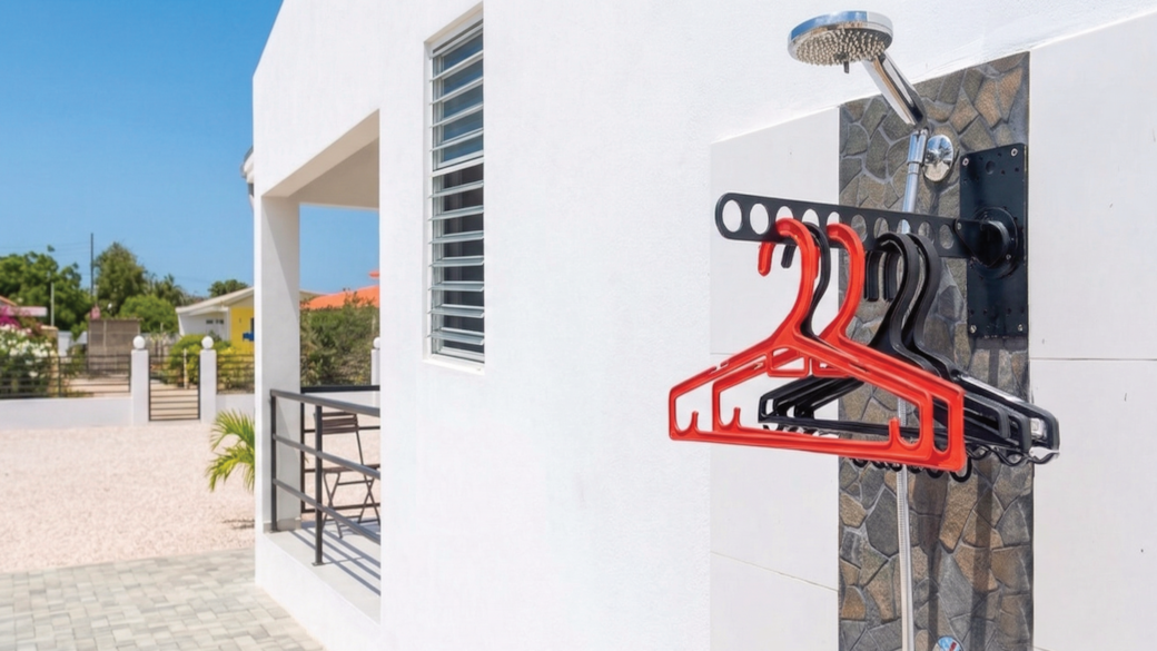 Bonaire is a diving paradise, and Villa Carolina is equipped for it. By the outdoor shower, there is a special hook for rinsing and hanging your gear. You can also use the large black tub to soak equipment in fresh water. If you cannot find it, please ask our host Milly. After rinsing, gear (such as your BCD) can be hung to dry in the shaded laundry area on the right side of the villa.