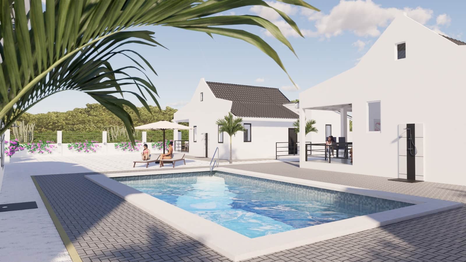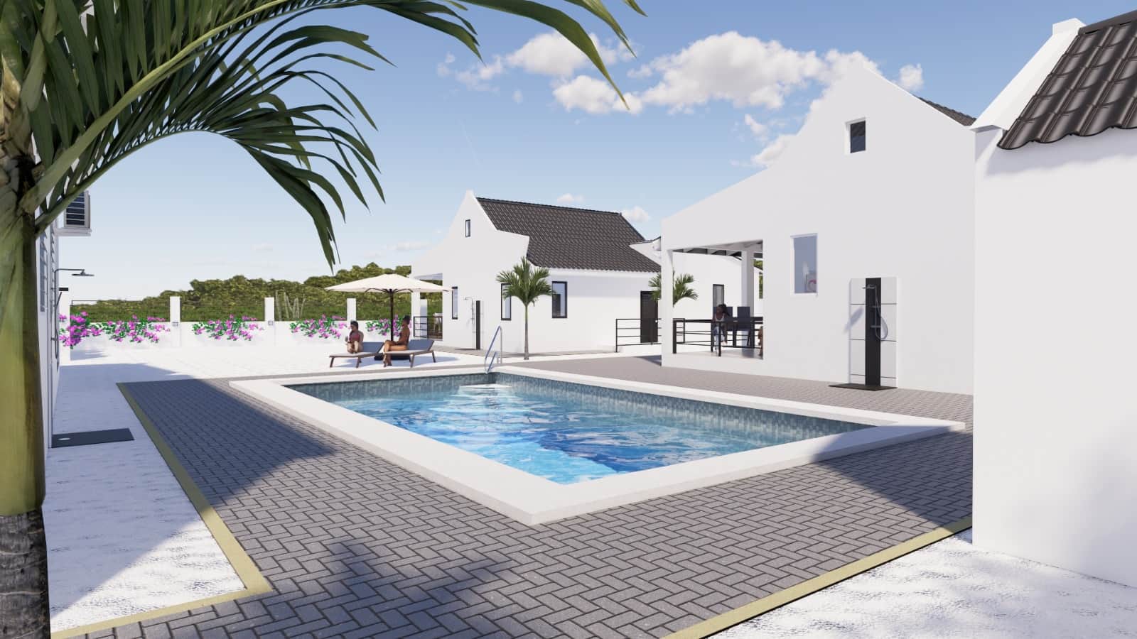 ‘Ayo Bonaire’ es un hermoso proyecto nuevo de un complejo acogedor en Bonaire, ¡a solo 90 metros del mar! El plan consta de tres villas, juntas comparten excelentes instalaciones, como un aparcamiento pavimentado y una gran piscina de 50 m² con una profundidad de 1,7 metros.