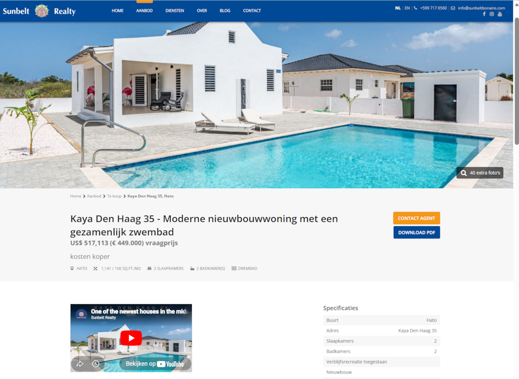 Esta es tu oportunidad de ser dueño de una propiedad rentable en una ubicación privilegiada. La venta está gestionada profesionalmente por Sunbelt Bonaire Real Estate. Consulta todos los detalles en esta página de Sunbelt.